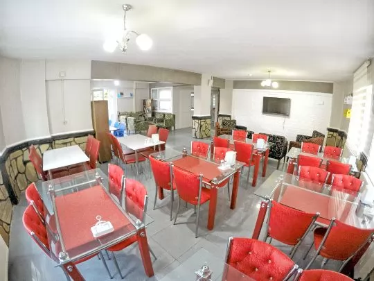 Kahvaltı ve Akşam Yemeği: Her gün lezzetli ve doyurucu kahvaltılar ve akşam yemekleri ile misafirlerimizin sağlıklı beslenmelerini sağlıyoruz. Besin değeri yüksek, hijyenik ve çeşitli menülerimizle misafirlerimizin günlük enerji ihtiyaçlarını karşılıyoruz. Ücretlendirmeye kahvaltı ve akşam yemeği konaklama fiyatına dahildir.